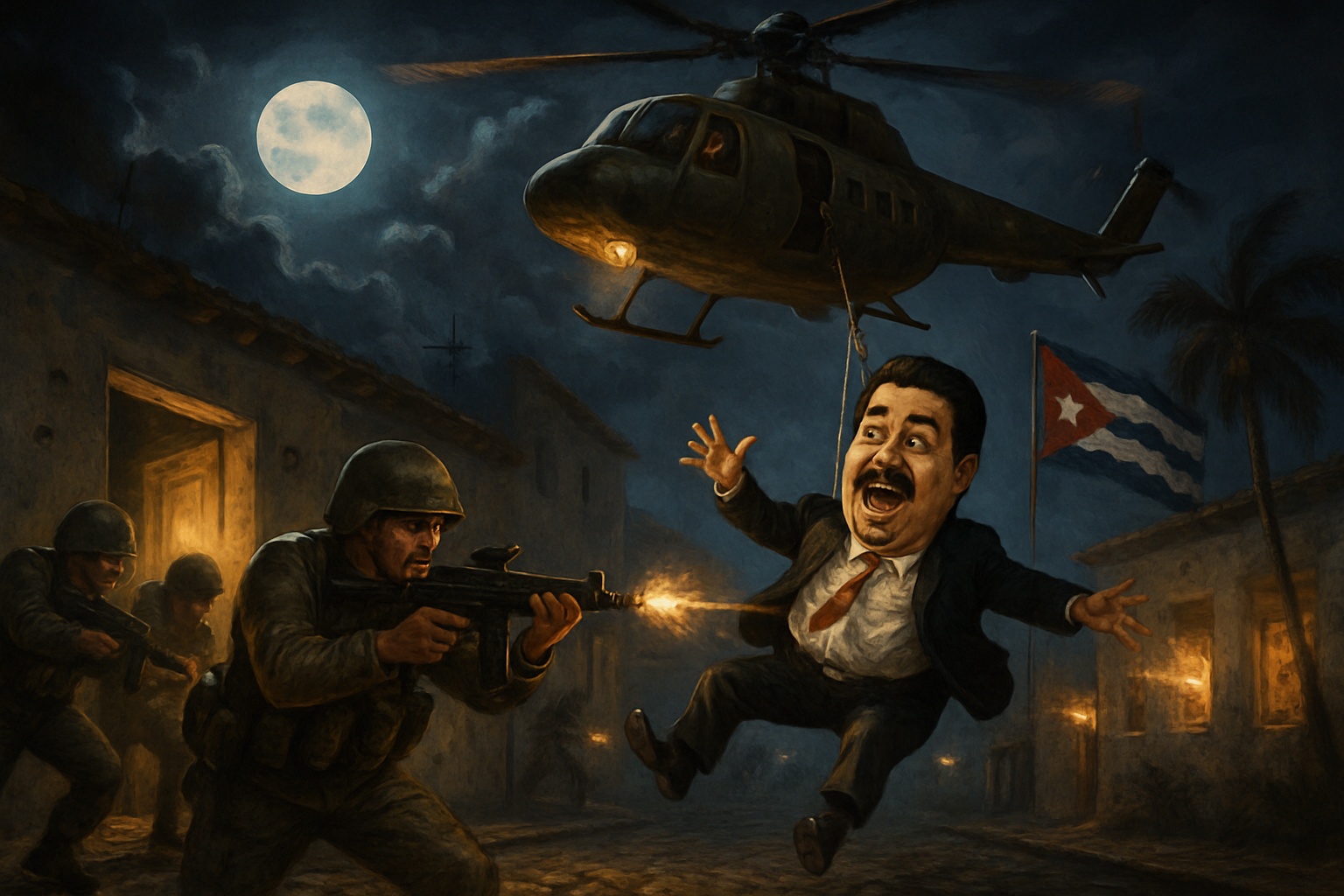 Midnight raid, guns hum Cuba claims thirty-two dead Maduro flown north