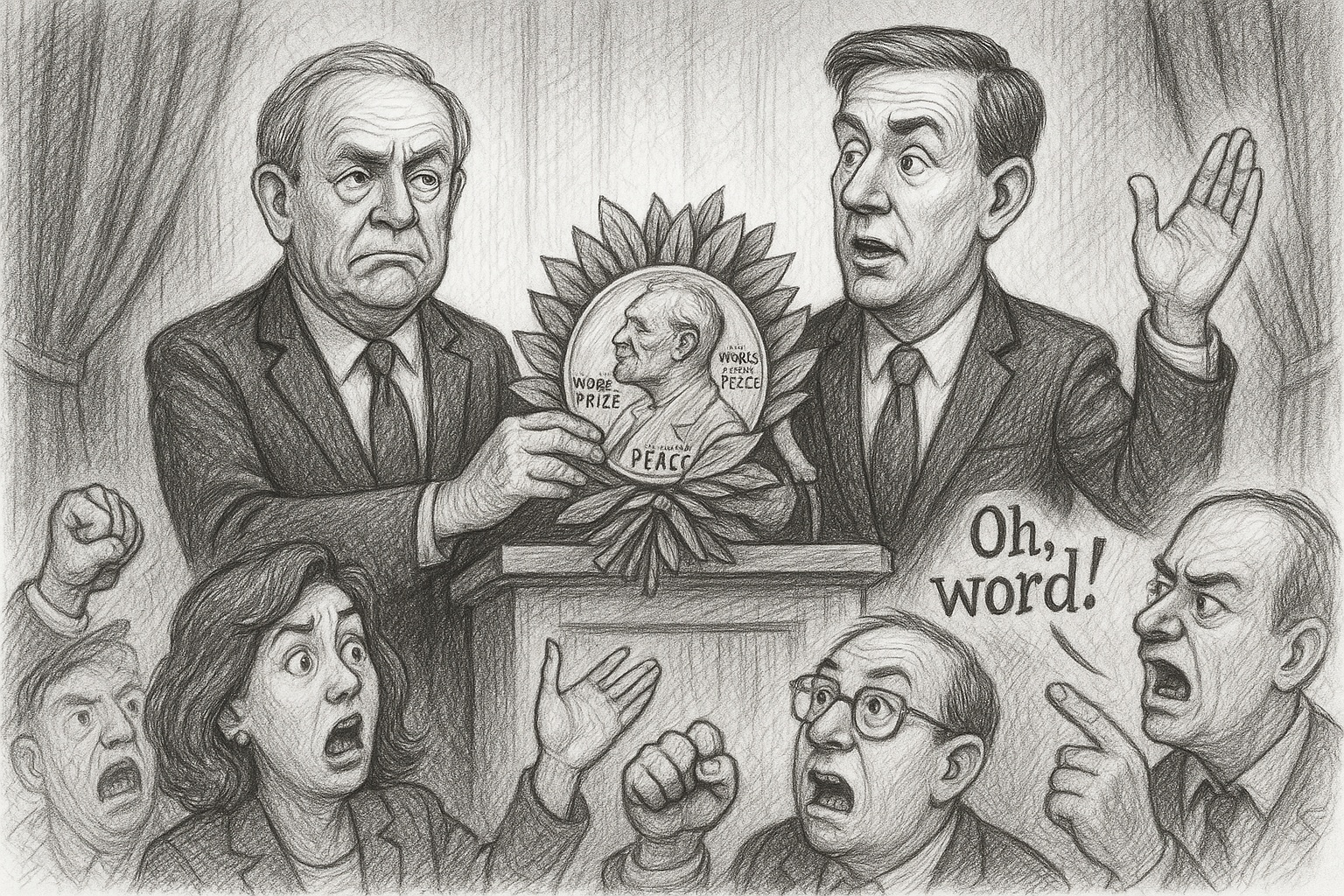 A political duo took the stage, With a peace prize wrapped in noble sage, Yet folks found it absurd, And cried out, “Oh, word!” Peace talks may now need a new gauge.